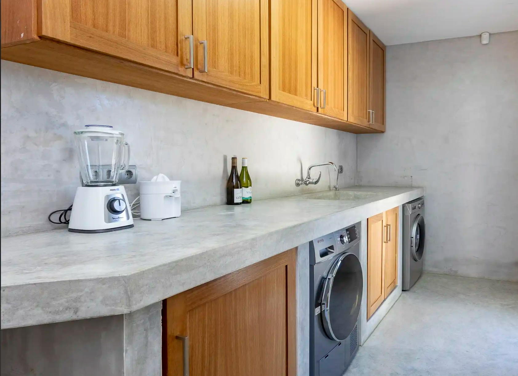 Fully equipped open-plan kitchen with double fridge/freezer, dishwasher, professional glass washer, oven, microwave and Nespresso coffee machine