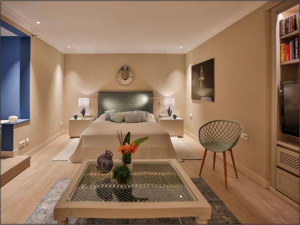 Bedroom 4 has independent access from the pool terrace, a double bed, TV and en-suite bathroom with shower