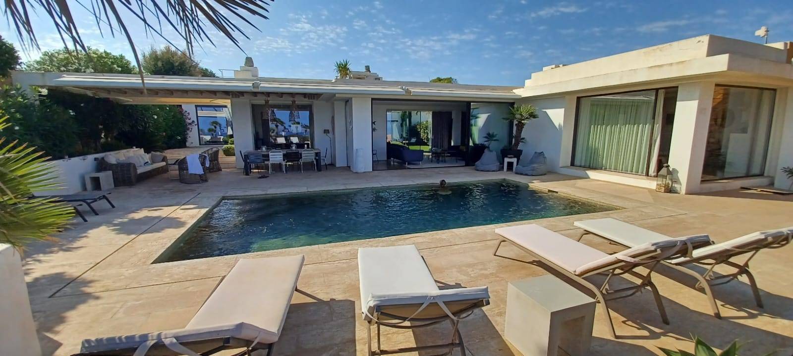 Nestled in the prestigious private urbanization of Caló d’en Real, Villa Moro is a rare frontline property offering direct contact with the Mediterranean and some of the most breathtaking sunset views in Ibiza. Positioned at the very edge of this exclusive enclave, the villa enjoys total privacy, serenity, and uninterrupted sea panoramas.