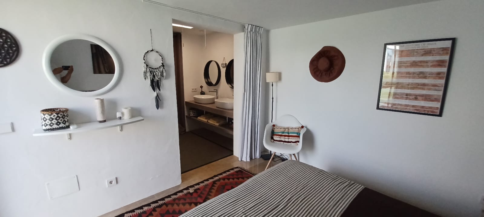 One of the villa’s most captivating features is its panoramic rooftop terrace. From here, guests can enjoy aperitifs at sunset, with front-row views as the sun dips into the sea, and the mystical silhouette of Es Vedrà appearing on the horizon—an iconic and truly magical sight.