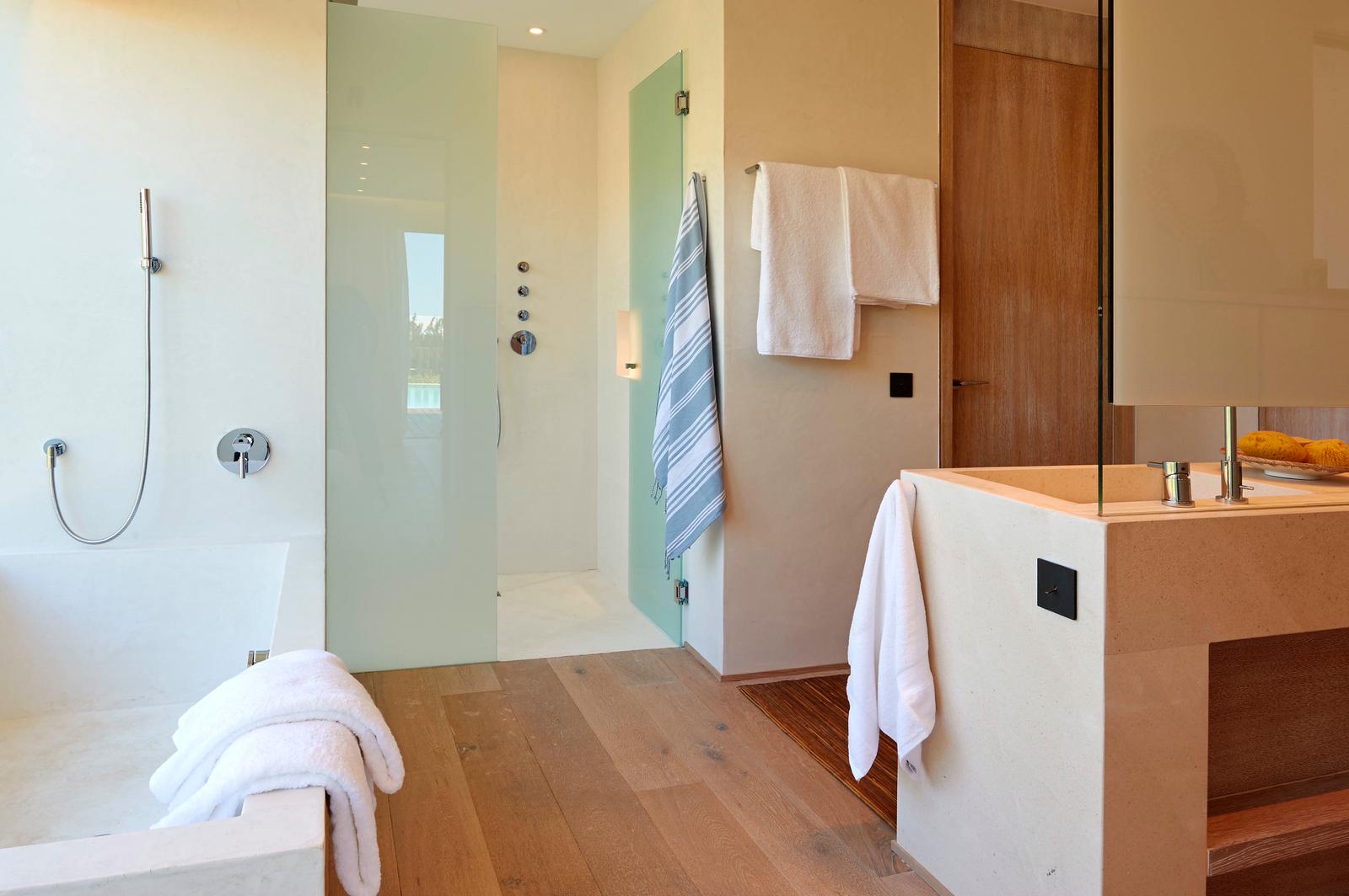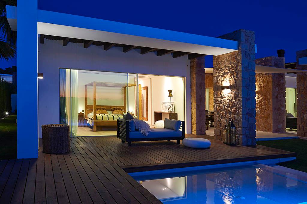 4 luxury double bedrooms with King Size beds accommodating up to 8 guests, all located on the ground floor; one bedroom features two separable single mattresses, all with direct access to the villa’s landscaped gardens