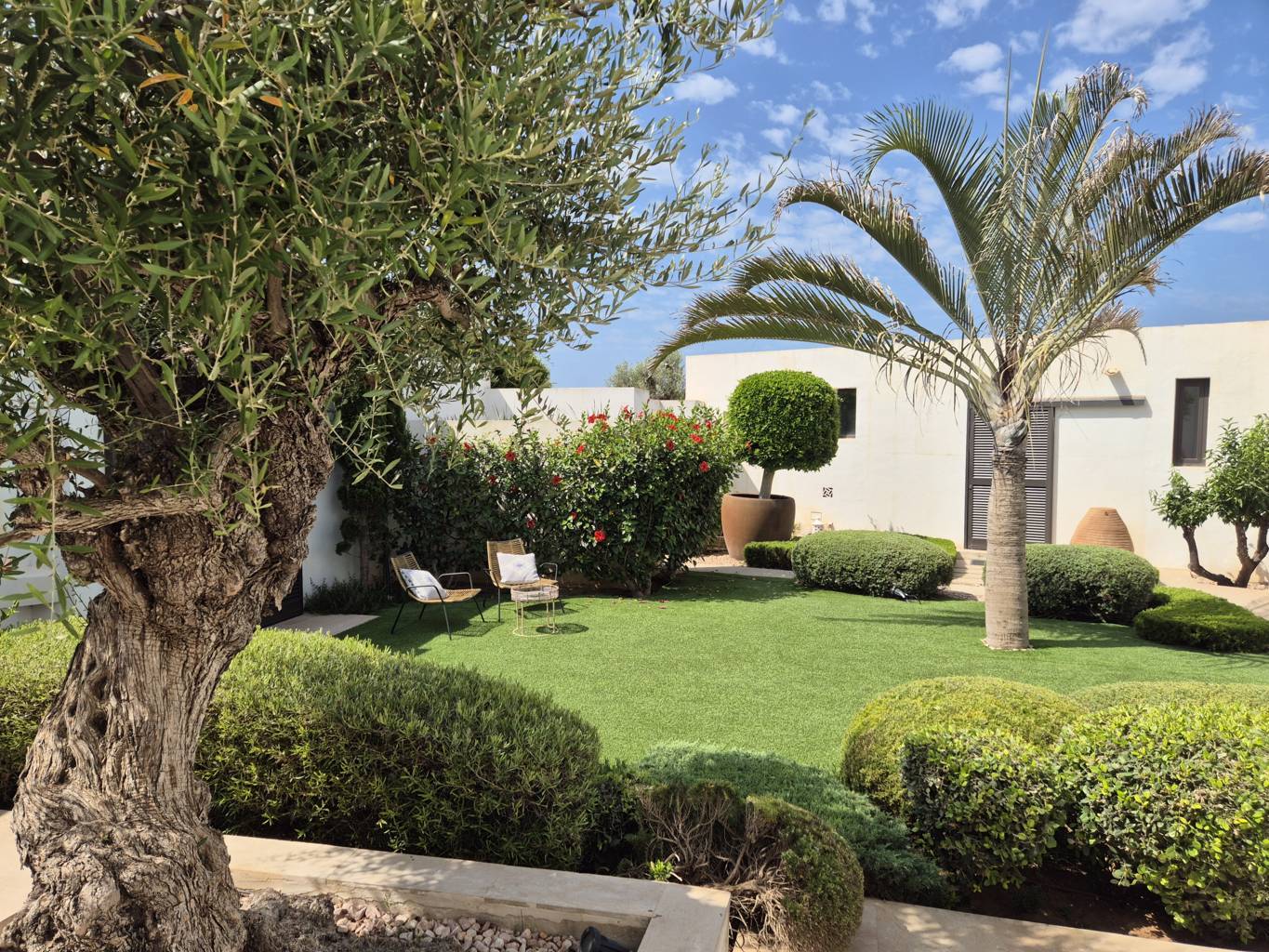 Gli spazi esterni sono pensati per vivere appieno ogni momento: una splendida piscina (9 x 4 m), diverse aree lounge e una zona pranzo coperta con vista sul mare e sulle isole di S’Esparta, perfetta per cene rilassate e serate indimenticabili.