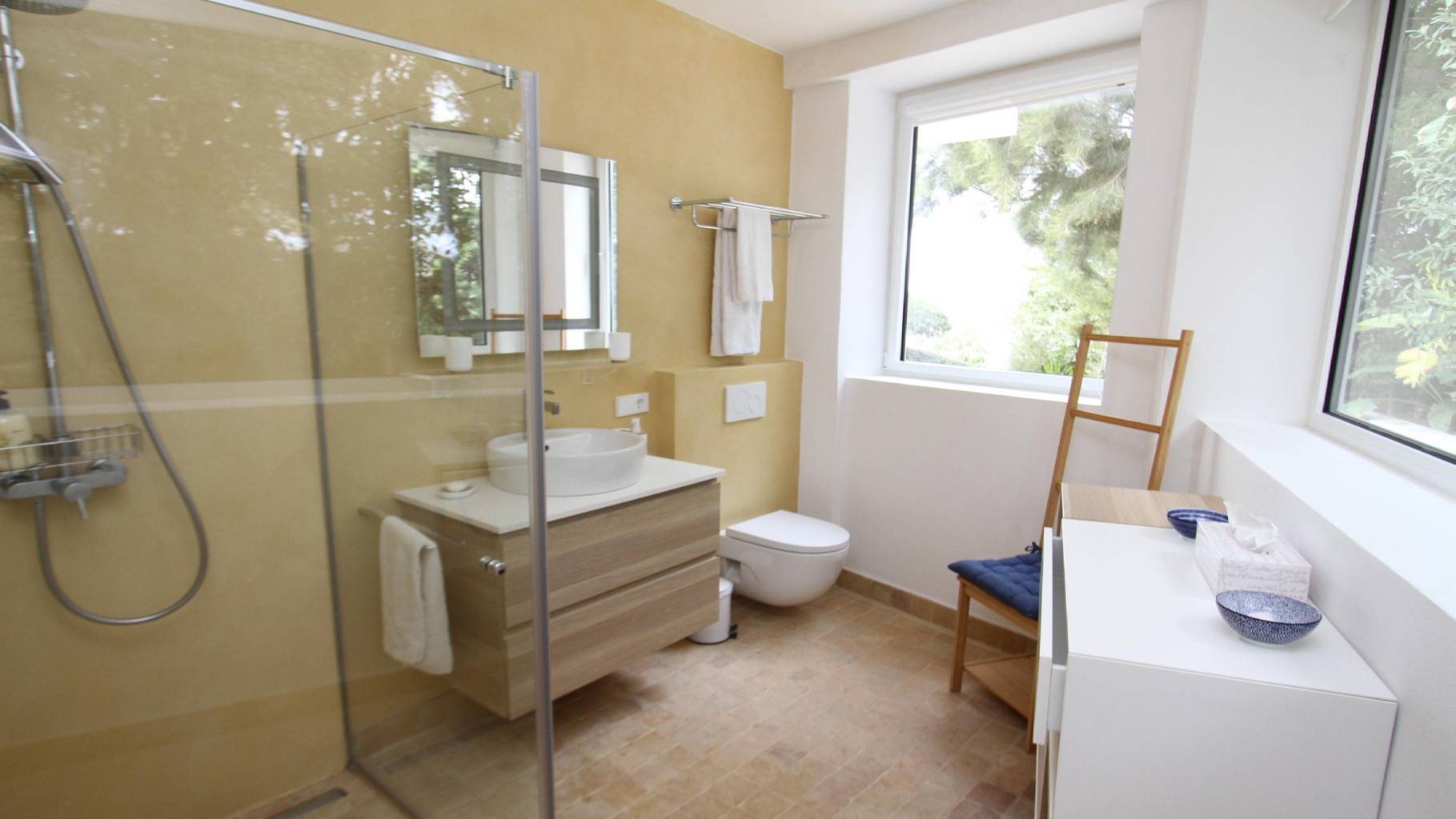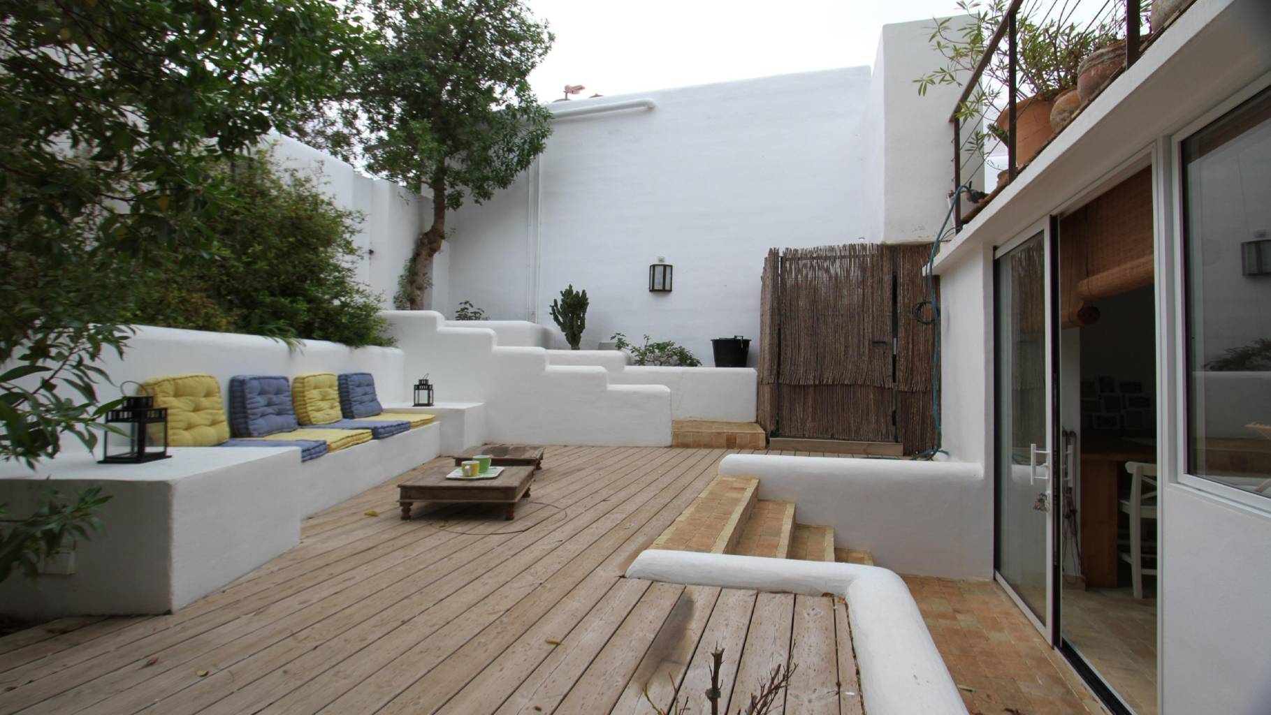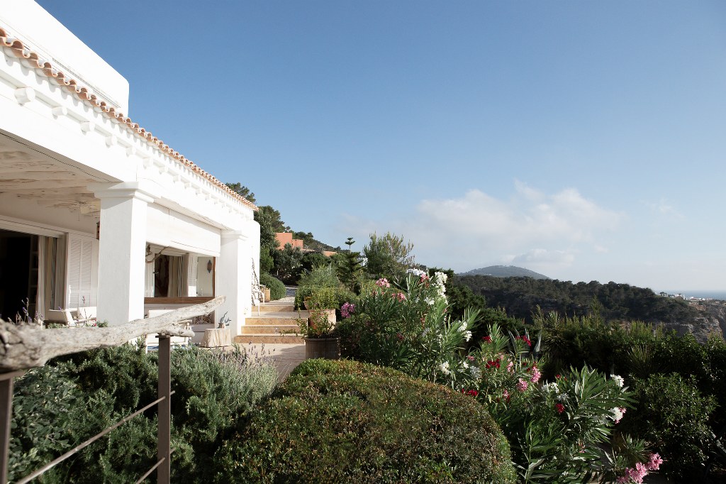 Esta exclusiva propiedad goza de una ubicación excepcional: a solo 2 minutos de la playa en coche, a 5 minutos de las famosas playas de Cala Tarida y Cala Vedella, y a 30 minutos de Ibiza ciudad.