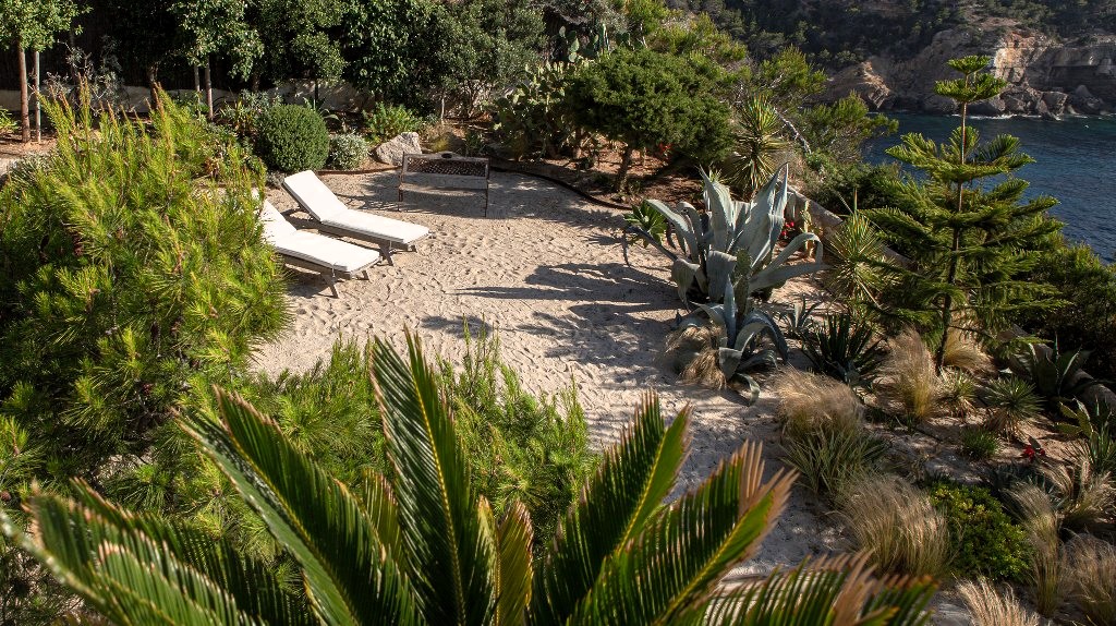 La casa, completamente reformada, se asienta sobre un amplio terreno de arena y ofrece espectaculares vistas al mar, además de acceso directo —mediante unas escaleras— a una cala natural situada justo debajo de la propiedad.