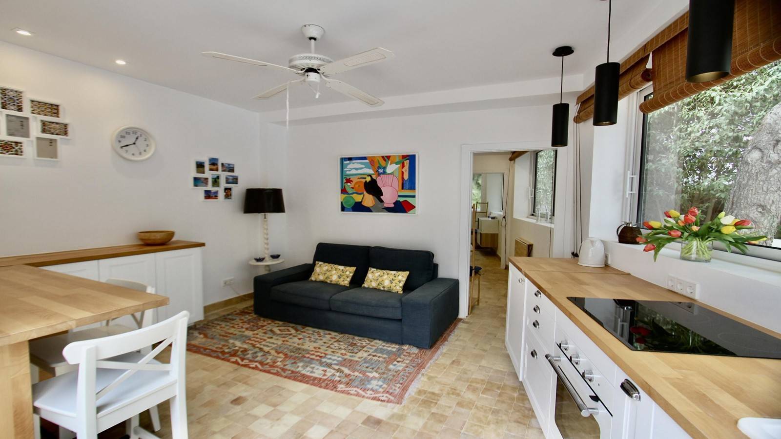 Con acceso directo desde la calle, dispone de un pequeño jardín privado, cocina, un dormitorio doble con TV y baño con ducha, ideal para huéspedes o personal de servicio.