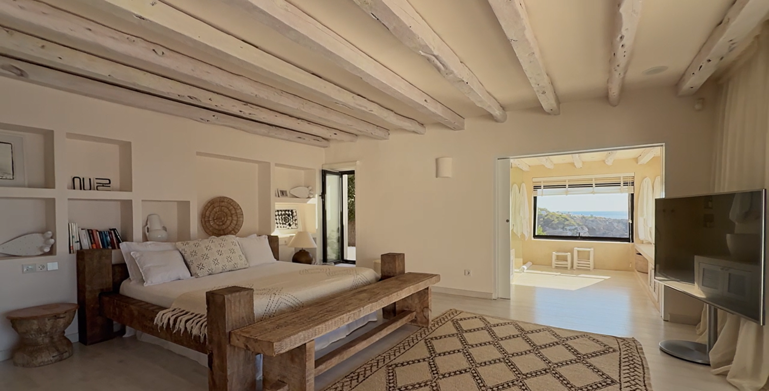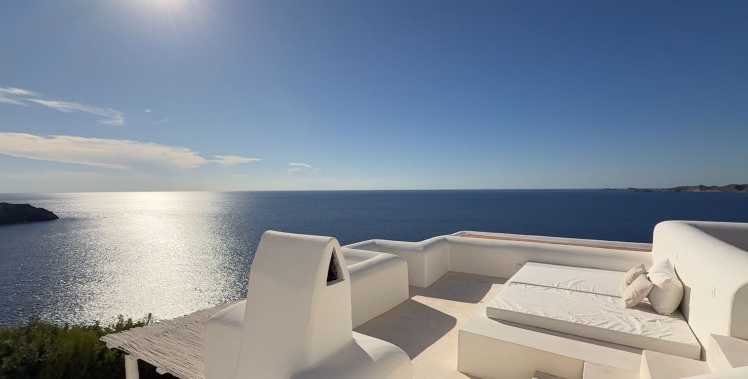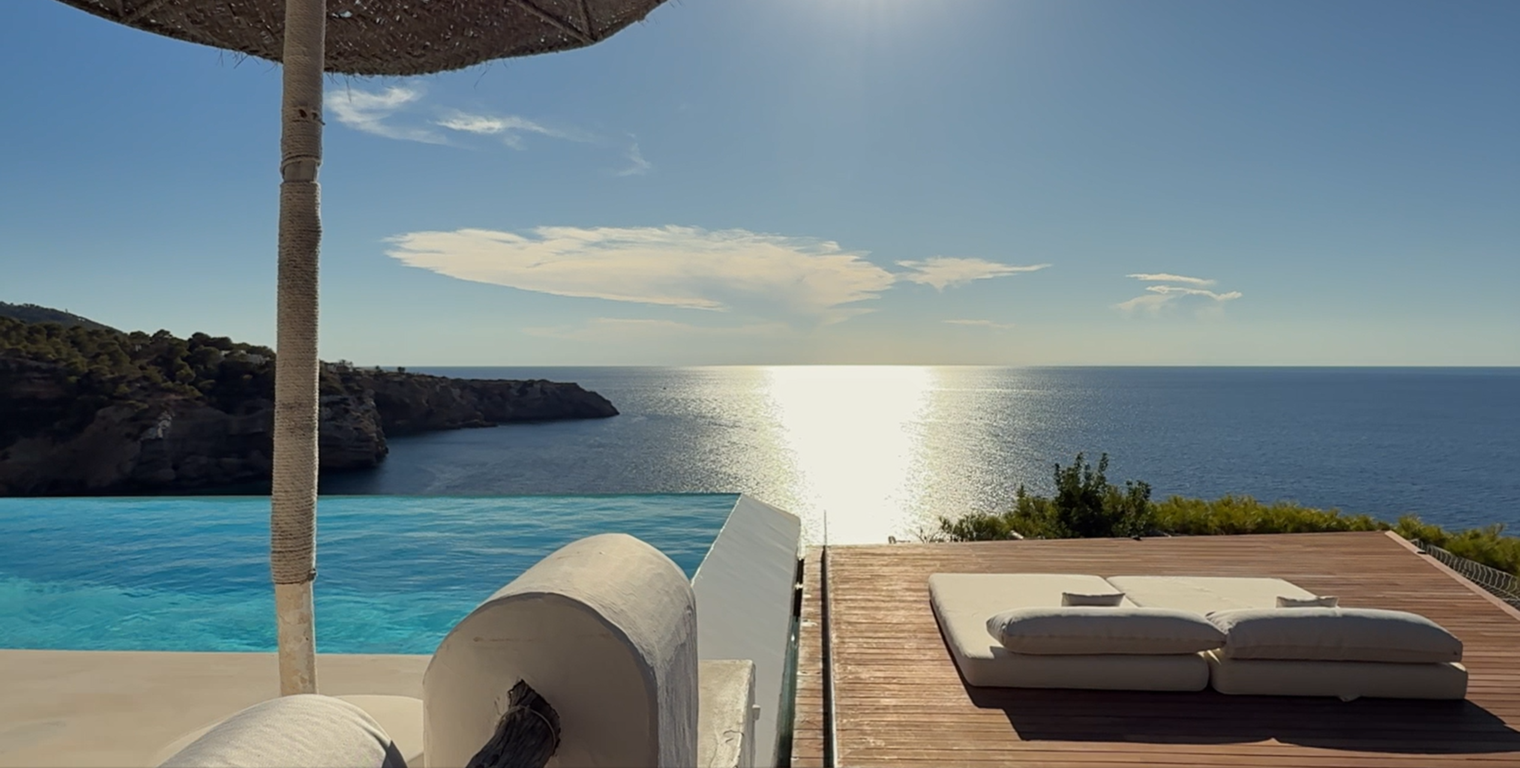 Sa Cova es una villa de lujo de extraordinaria belleza, en primera línea de mar, realzada por vistas panorámicas ininterrumpidas sobre el Mediterráneo y sus más espectaculares atardeceres. Situada en la prestigiosa Cala Moli, disfruta de una ubicación excepcionalmente privada y, al mismo tiempo, estratégica: a solo 10 minutos de San Josep y 25 minutos de Ibiza.