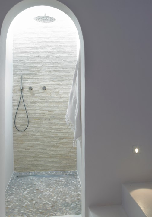 Todos los baños están acabados con duchas o bañeras de piedra de Bali y grifería de diseño.