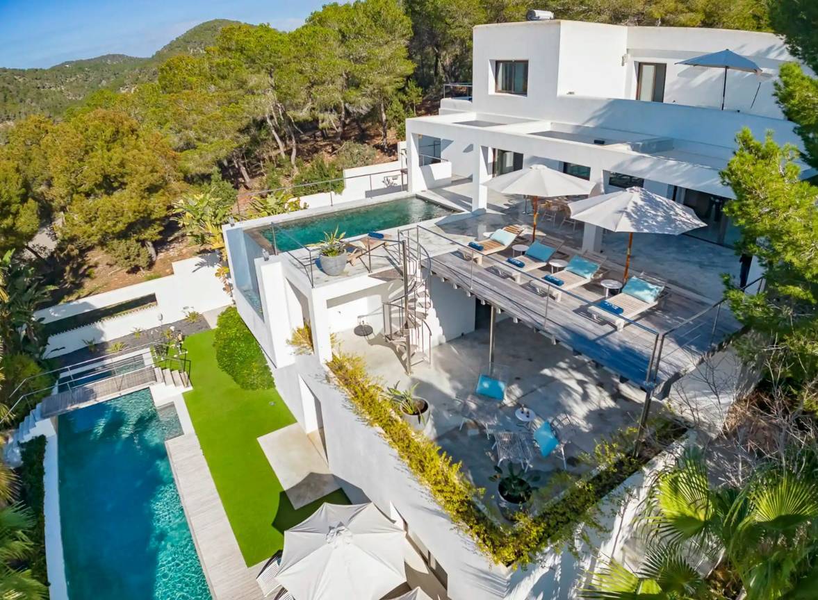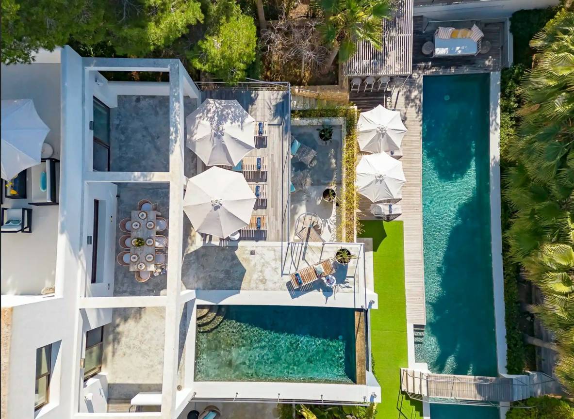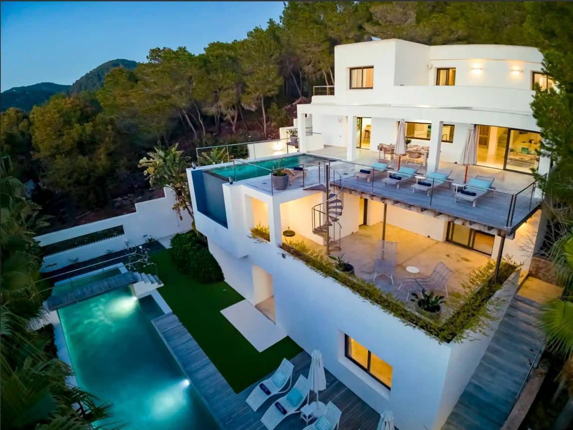 Diseñada para un público internacional exigente, la villa se distribuye en cuatro elegantes niveles, ofreciendo amplios espacios, una arquitectura minimalista refinada y extensas terrazas en cada planta. La distribución garantiza tanto privacidad como confort, convirtiéndola en el refugio ideal para familias, parejas y grandes grupos de amigos que buscan una experiencia exclusiva en Ibiza.