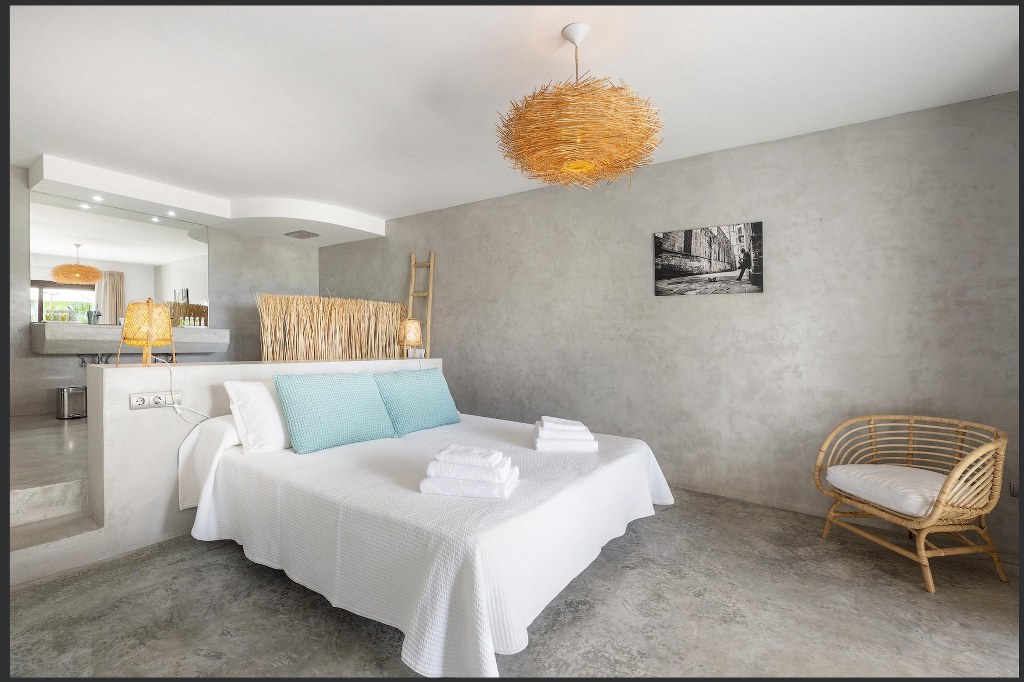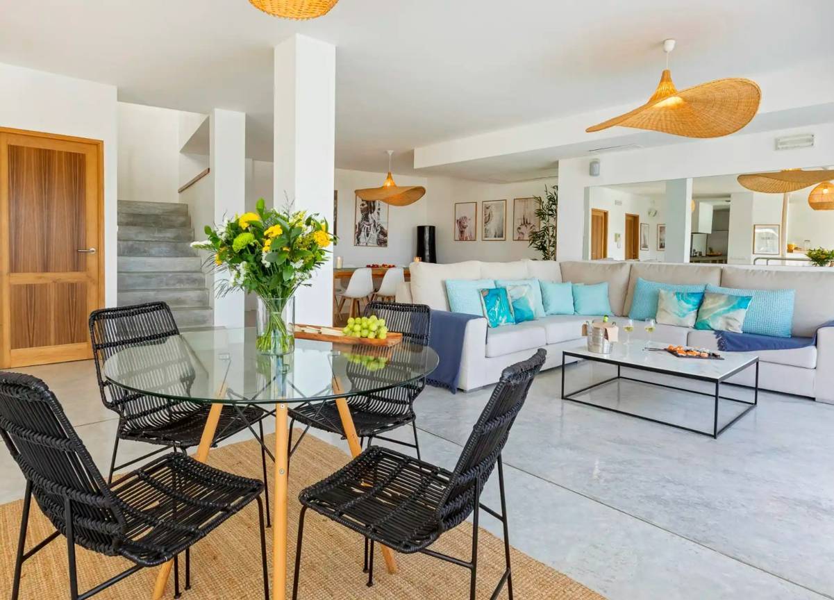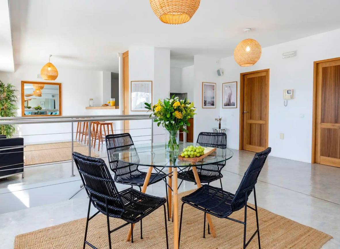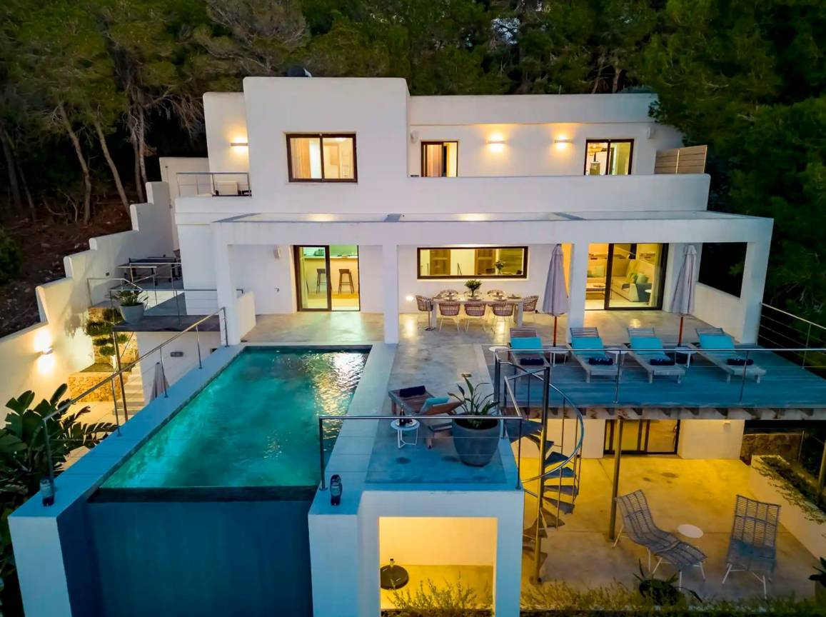 Diseñada para un público internacional exigente, la villa se distribuye en cuatro elegantes niveles, ofreciendo amplios espacios, una arquitectura minimalista refinada y extensas terrazas en cada planta. La distribución garantiza tanto privacidad como confort, convirtiéndola en el refugio ideal para familias, parejas y grandes grupos de amigos que buscan una experiencia exclusiva en Ibiza.
