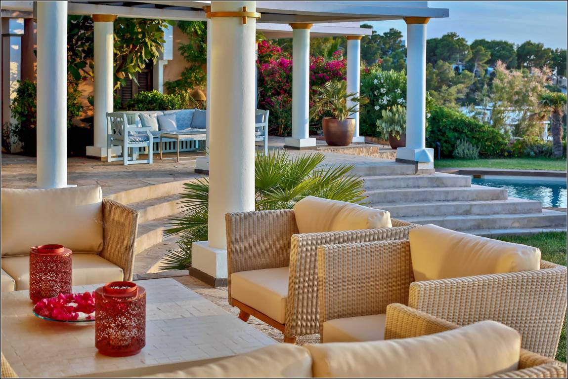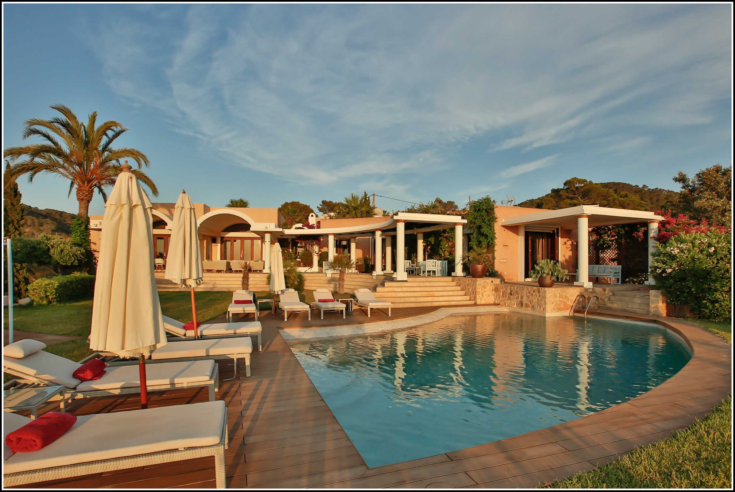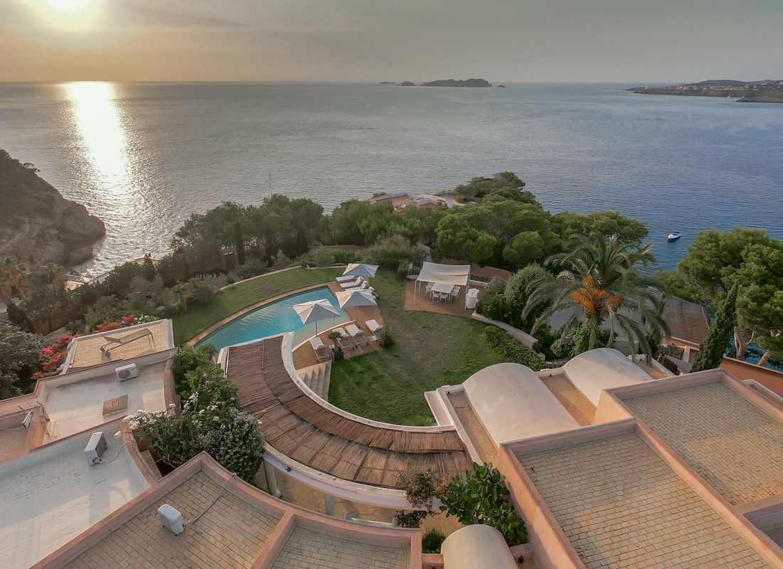 Villa Can Isara es una majestuosa villa de lujo en primera línea de mar, situada directamente sobre la espléndida bahía de Cala Moli. La propiedad goza de una ubicación absolutamente exclusiva, con vistas panorámicas inigualables al mar, a las islas S’Espartas y a espectaculares puestas de sol, visibles desde varios espacios de la villa. Un acceso privado directo al mar permite llegar nadando, con total facilidad, a la playa de Cala Moli. Existe además la posibilidad de amarre para embarcaciones, un privilegio poco común y muy solicitado.