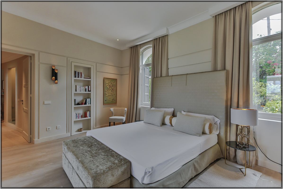 Dormitorio 5 con amplia cama doble, posibilidad de añadir dos camas individuales para niños, TV y baño ensuite con bañera