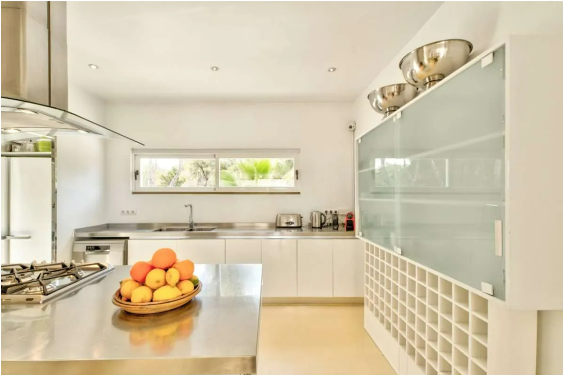 En el interior, la villa revela un ambiente de elegancia sobria y confort absoluto. Dispone de 6 dormitorios exquisitamente diseñados, cada uno con su propio baño en suite, garantizando la máxima privacidad tanto para familias como para parejas. El amplio salón se integra armoniosamente con una cocina moderna totalmente equipada y un elegante comedor, con capacidad para hasta 16 invitados, ideal para crear momentos inolvidables.