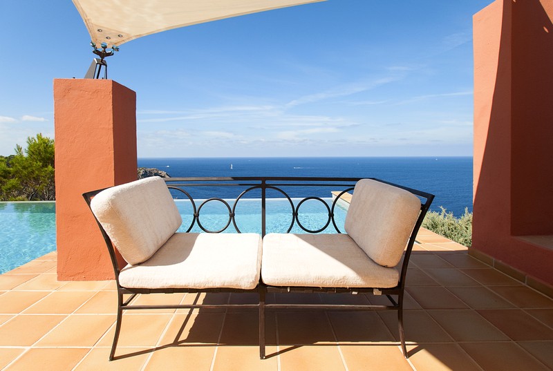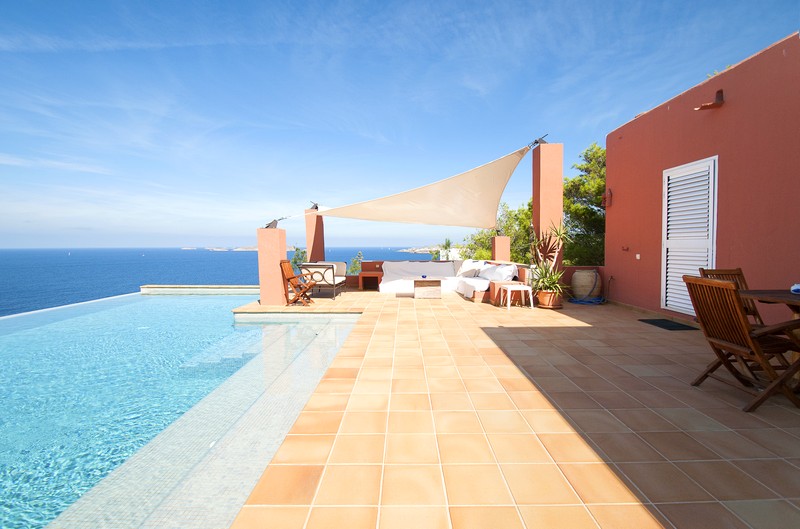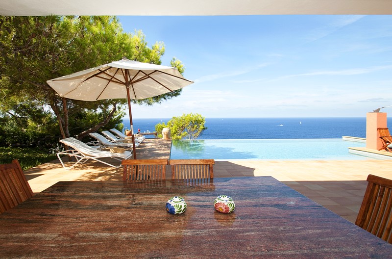El corazón palpitante de la propiedad es la espectacular terraza panorámica, que alberga una piscina infinity de 11 x 6 metros, perfectamente integrada con el horizonte marino. Desde aquí, la vista se pierde sobre las icónicas islas de S’Espartas y Bledas, regalando atardeceres impresionantes que transforman cada noche en una experiencia única. Los espacios exteriores, diseñados para el máximo confort y la convivencia, incluyen una elegante zona de comedor, áreas de relax y una BBQ, ideales para disfrutar plenamente del estilo de vida mediterráneo.