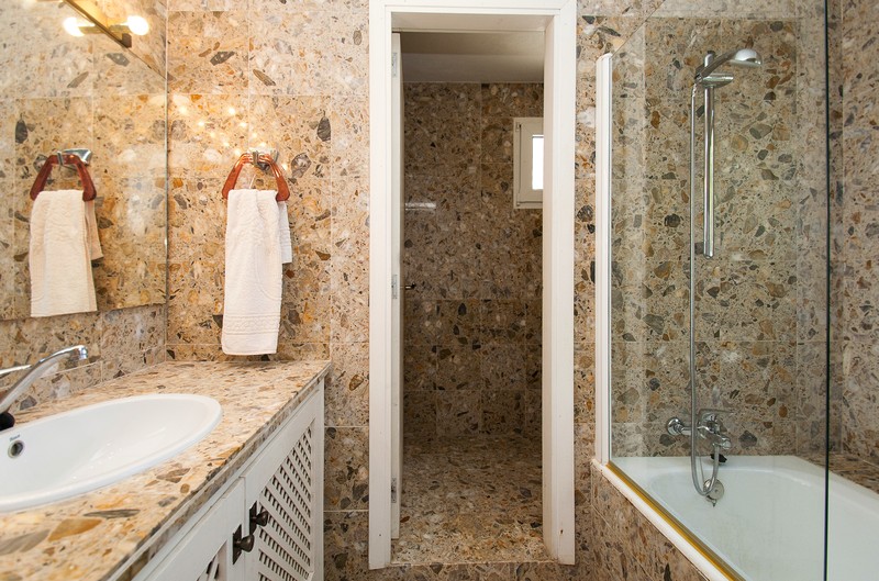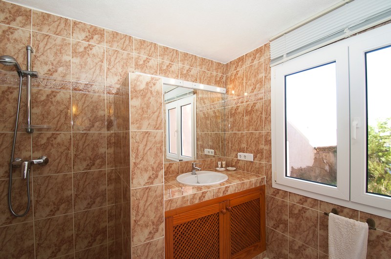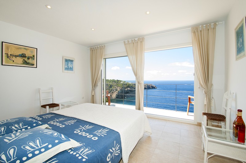 La zona de noche de la casa principal incluye dos dormitorios, ambos con vistas al mar, amueblados con gusto y dotados de baño privado con ducha.