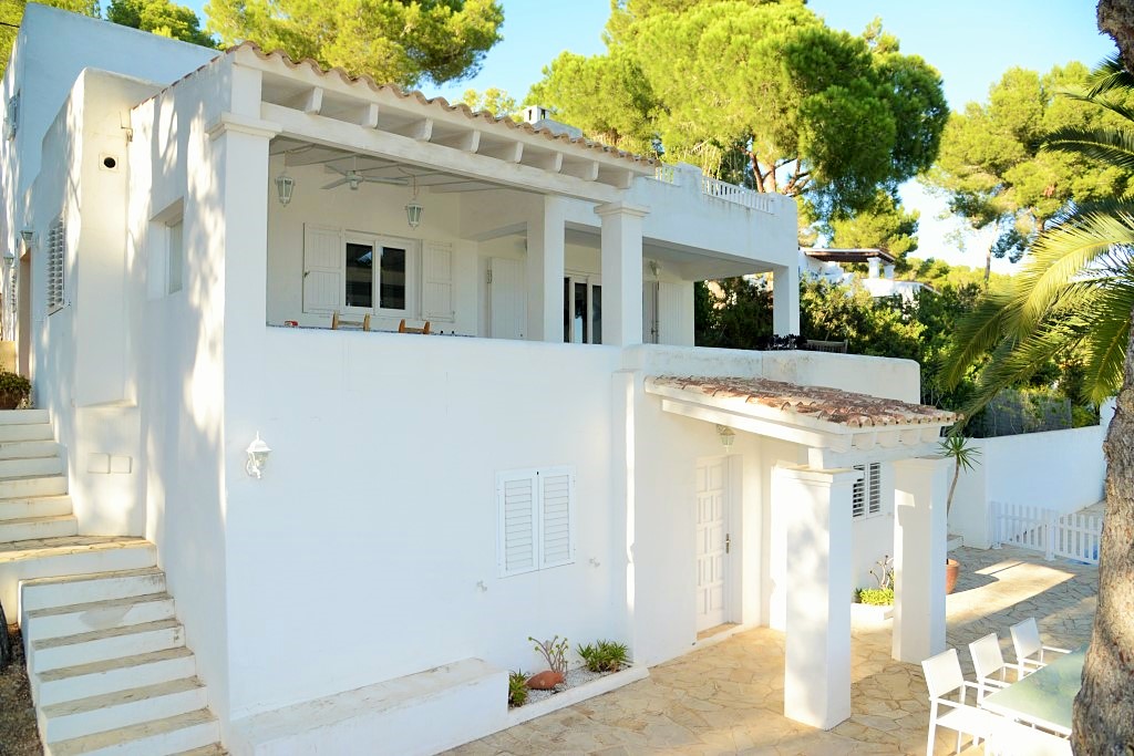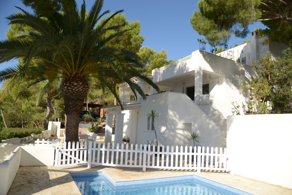 Trinivel es una villa exclusiva ubicada en una parcela privada y vallada de 2.500 m², con frutales, en la prestigiosa zona de Es Cubells, a solo 5 minutos de la playa de Ses Boques, 10 minutos de San Josep y 25 minutos de la ciudad de Ibiza.