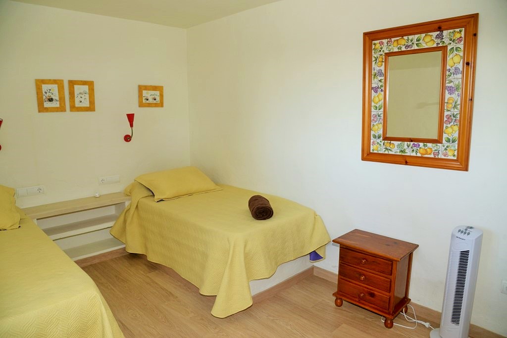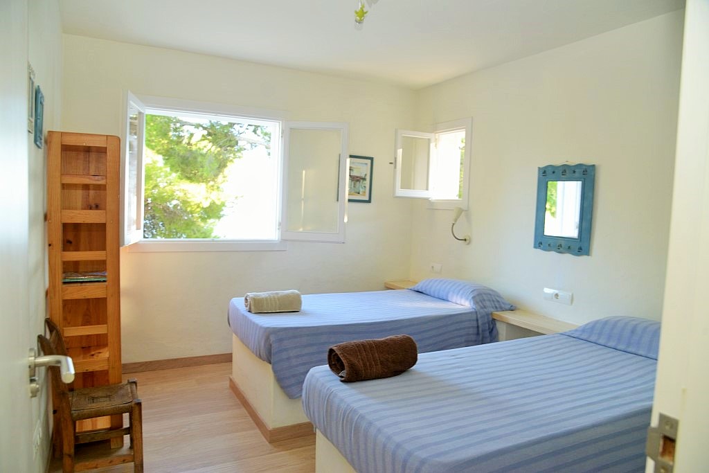un tercer dormitorio con dos camas de 90×200 cm y terraza con vistas al mar