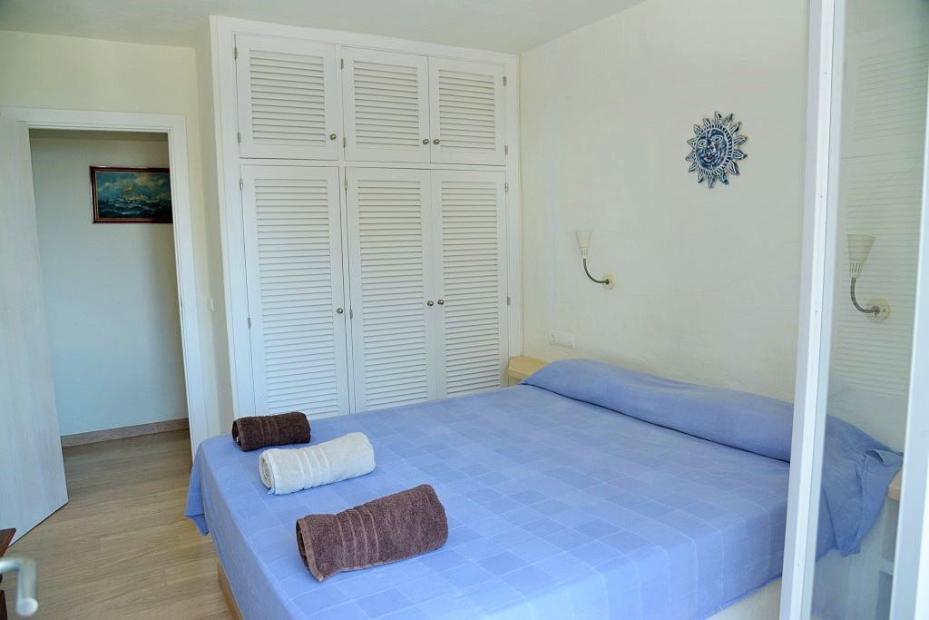 un segundo dormitorio con cama de 160×200 cm y terraza con vistas al mar,